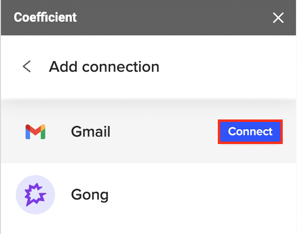 Click “Connect” and follow the prompts to give Coefficient permission to access your Gmail account.