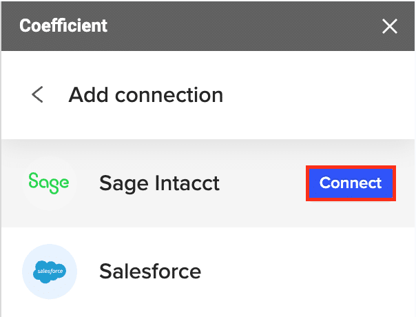 Step 1: Add Sage Intacct as a data source in Coefficient