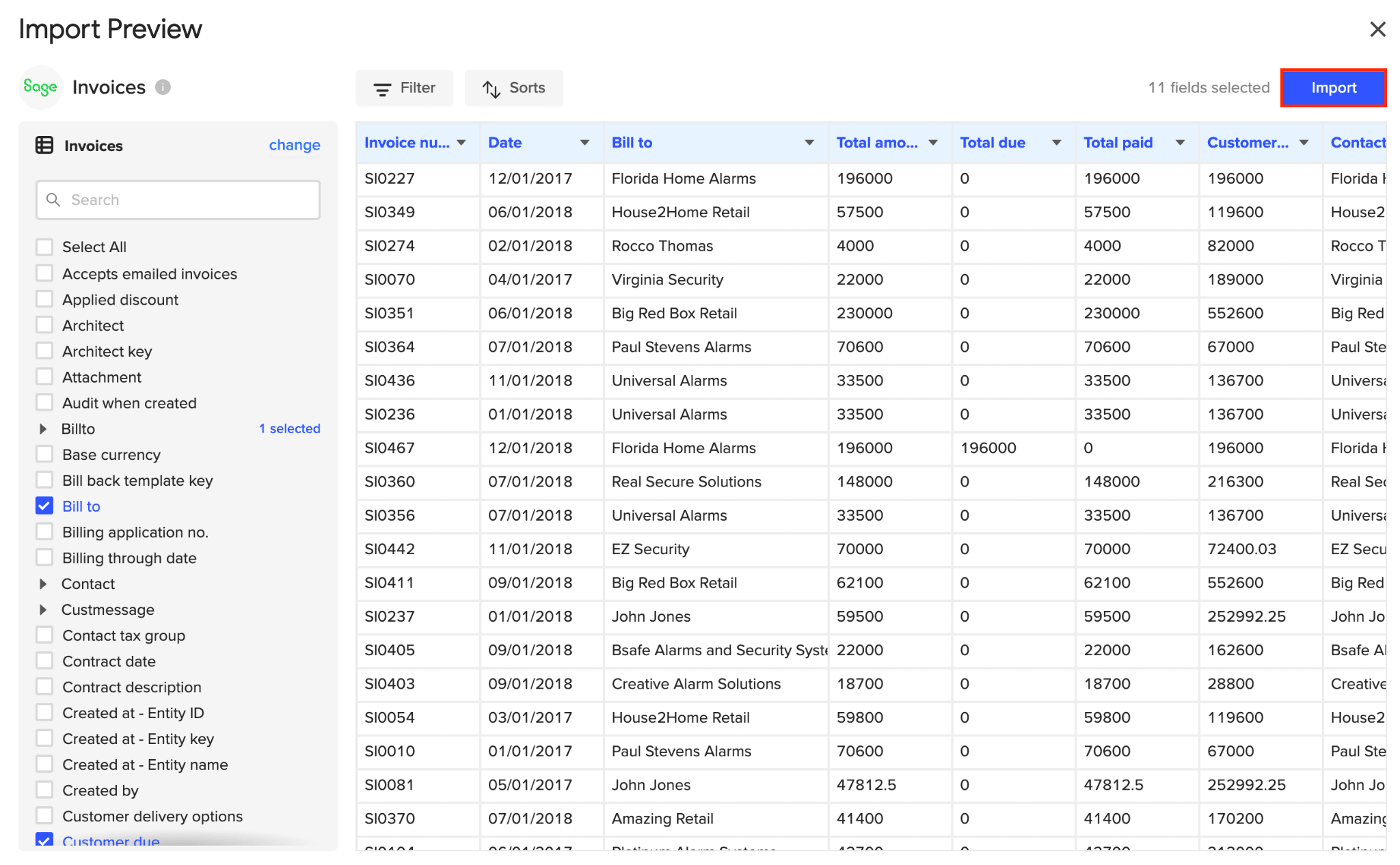 Once you’re satisfied with your selection, click “Import” to pull the Sage Intacct data into your Excel spreadsheet.