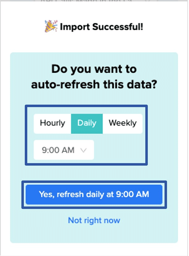 To keep your Sage Intacct data current, set up an auto-refresh schedule in Coefficient. Choose an update frequency that suits your needs.