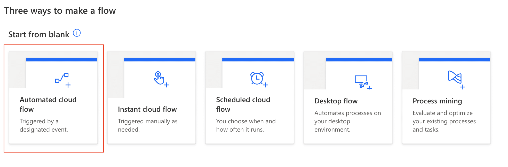 • In the flow creation menu, select the “Automated cloud flow” option.