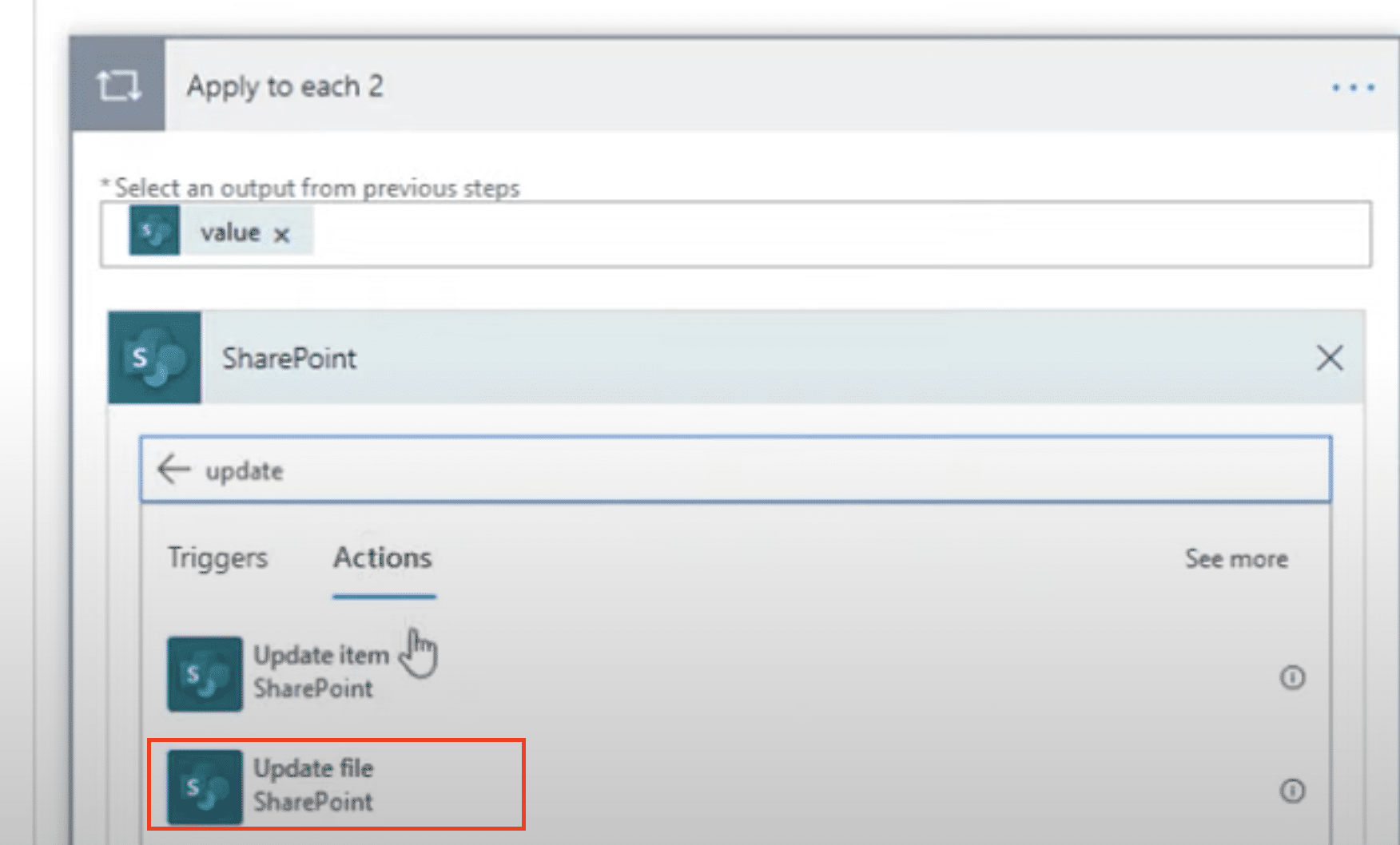 • Use a “Create item” or “Update item” SharePoint action to sync the data.