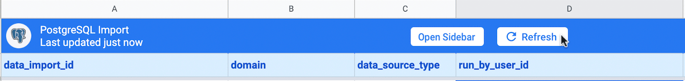 You can also import live data into Sheets at any time with one click. Simply click the Refresh button above your data import.