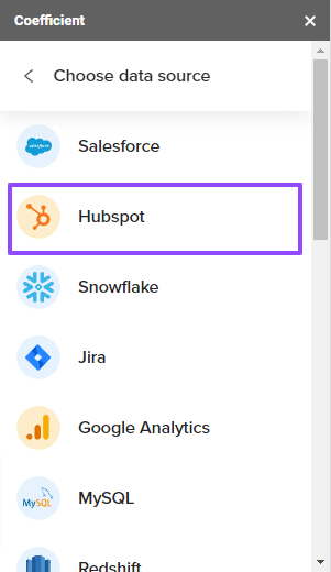 Choose the data source you want to connect to Coefficient. Coefficient offers pre-built connectors for some of the most popular data sources, including: