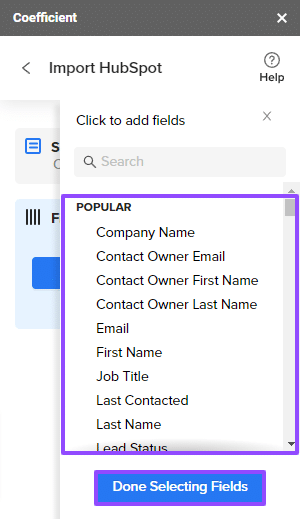 Choose the object fields you want to import and click Done Selecting Fields.