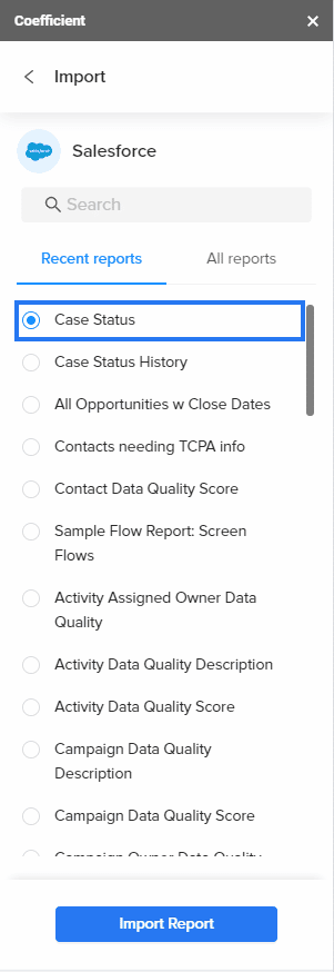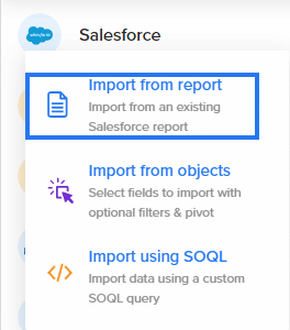 Step 4: Select Import from Report (or Import from Object if you want to manage the data pull directly in Google Sheets).