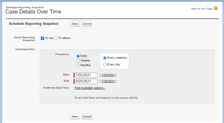 However, this isn’t always ideal, especially if you want to enable reporting snapshots for a test or allow other users control over their Salesforce snapshots.