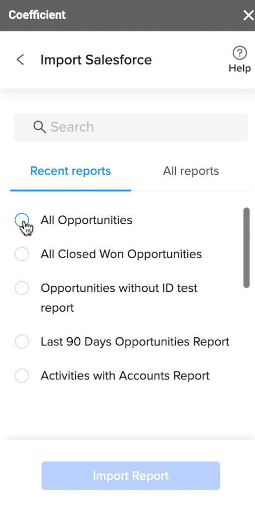 With Coefficient, you can connect Google Sheets to Salesforce in a single click and import Salesforce data from existing reports, objects & fields, and custom SOQL queries.