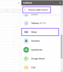 Click Import Data from the Coefficient sidebar, then select Stripe as your data source.