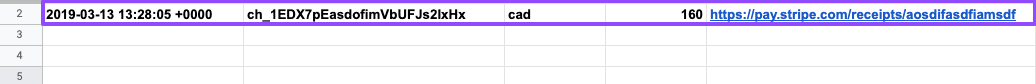 Once the test is done, you should see the Stripe data as a row in your Google spreadsheet.