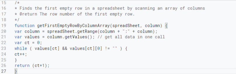 Step 4: Create a helper function. This lets you find the first empty row within your spreadsheet.