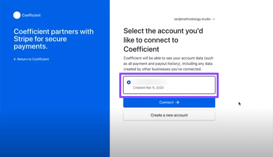 Step 3: Select the Stripe account you want to connect and click Connect.